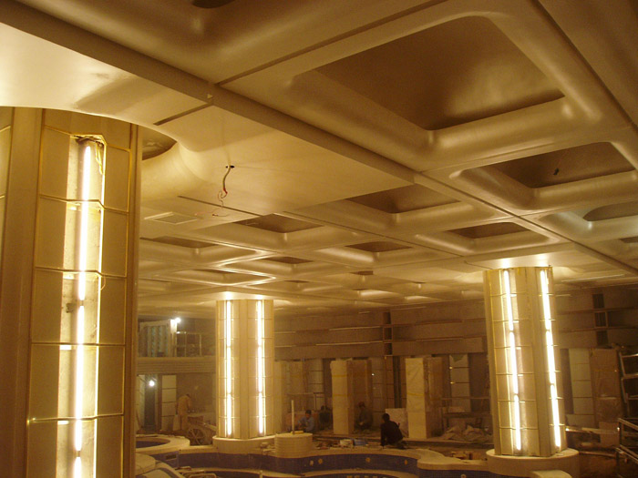 According to the architectural decoration design drawings to measure the existing building, combined with the layout of the steel skeleton position and GRC component shape requirements, design GRC components, make GRC components in line with the grid size, location, meet the shape requirements of decorative design GRC parts production and processing.